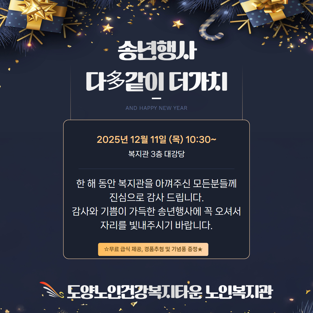 특별하고 풍성한 송년행사를 정성껏 마련하였습니다.