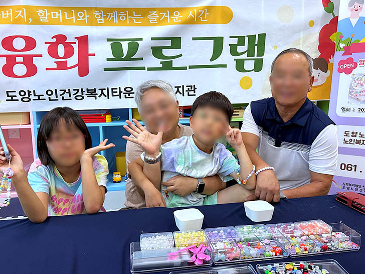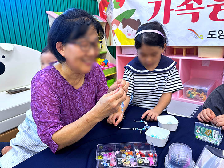 조부모님과 손자녀가 함께 알록달록한 비즈를 열심히 꿰며 커플 스트랩, 팔찌, 비즈볼펜을 만드는 즐거운 시간이었습니다.