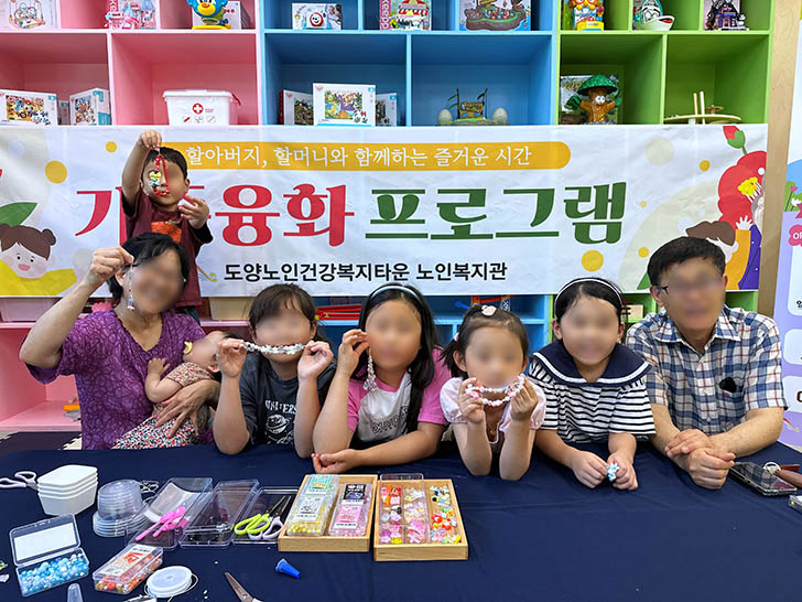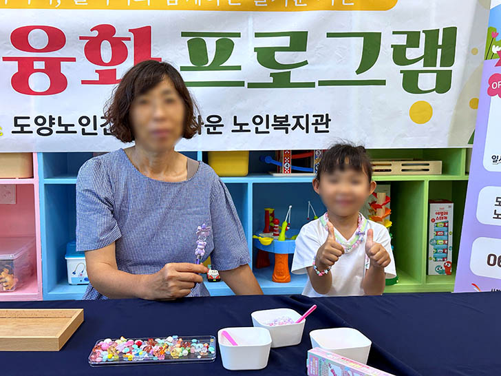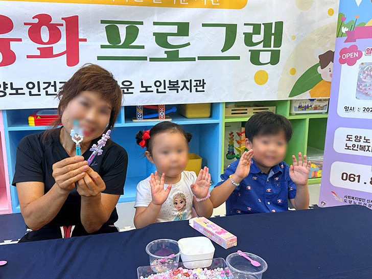 도양노인건강복지타운 노인복지관 조손놀이방에서는 7~8월 상시 프로그램으로 '알록달록! 반짝 커플 주얼리'를 진행하였습니다.