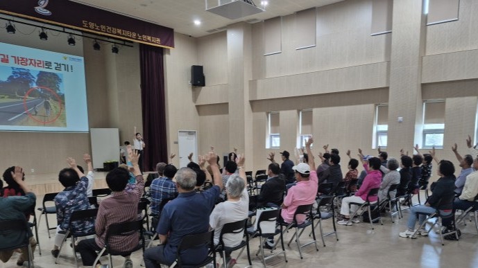 도양노인건강복지타운 노인복지관에서는 추석 명절을 앞두고, 고흥경찰서와 연계하여 복지관 이용 어르신들을 대상으로 교통안전교육을 실시하였습니다. 이번 교육에서는 어르신들의 안전한 보행을 위한 유의사항과 실제 교통사고 사례 영상 시청, 야간 보행 시 밝은 옷 착용의 중요성과 무단횡단의 위험성 등 어르신들의 일상과 밀접한 교통안전 수칙을 중심으로 안내해 드렸습니다. 앞으로도 도양노인건강복지타운 노인복지관은 어르신들의 안전하고 건강한 일상을 위해 더욱 노력하겠습니다. 감사합니다.