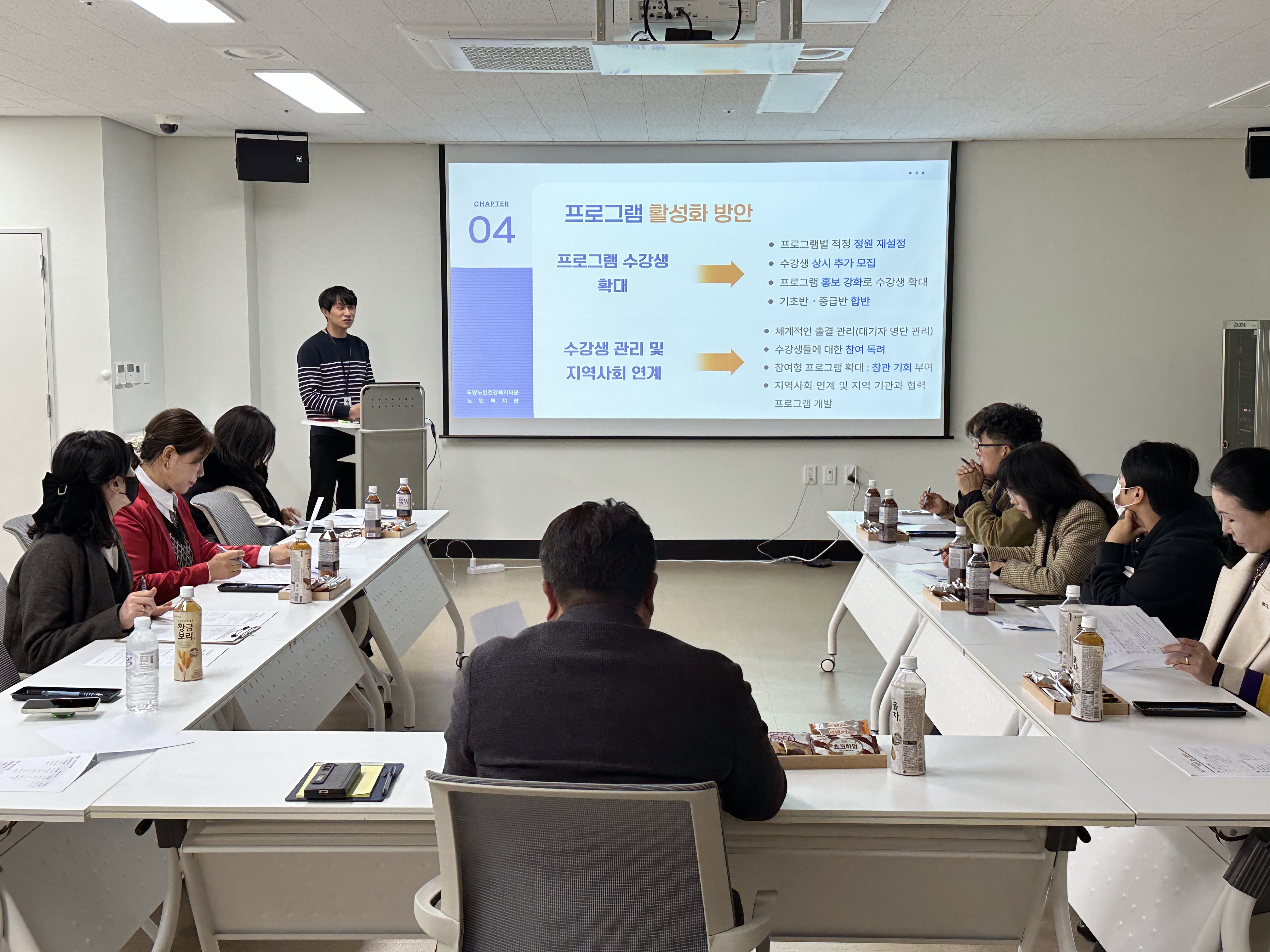 아울러 어르신 참여 확대와 만족도 향상을 위한 프로그램 활성화 방안, 효율적인 교육 운영을 위한 향후 추진 계획 등 다양한 의견을 공유하는 뜻깊은 시간이 되었습니다.