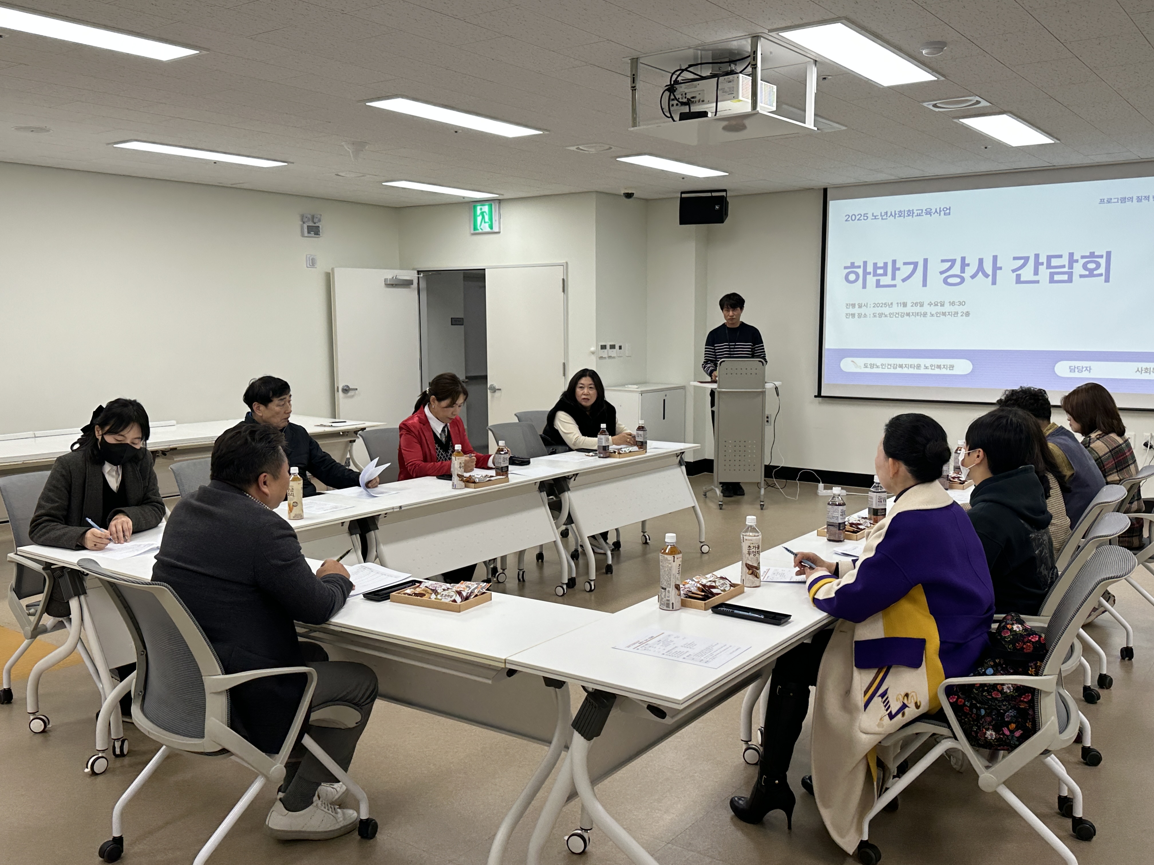 도양노인건강복지타운 노인복지타운 노인복지관은 2025년 노년사회화교육사업 하반기 강사간담회를 진행하였습니다.