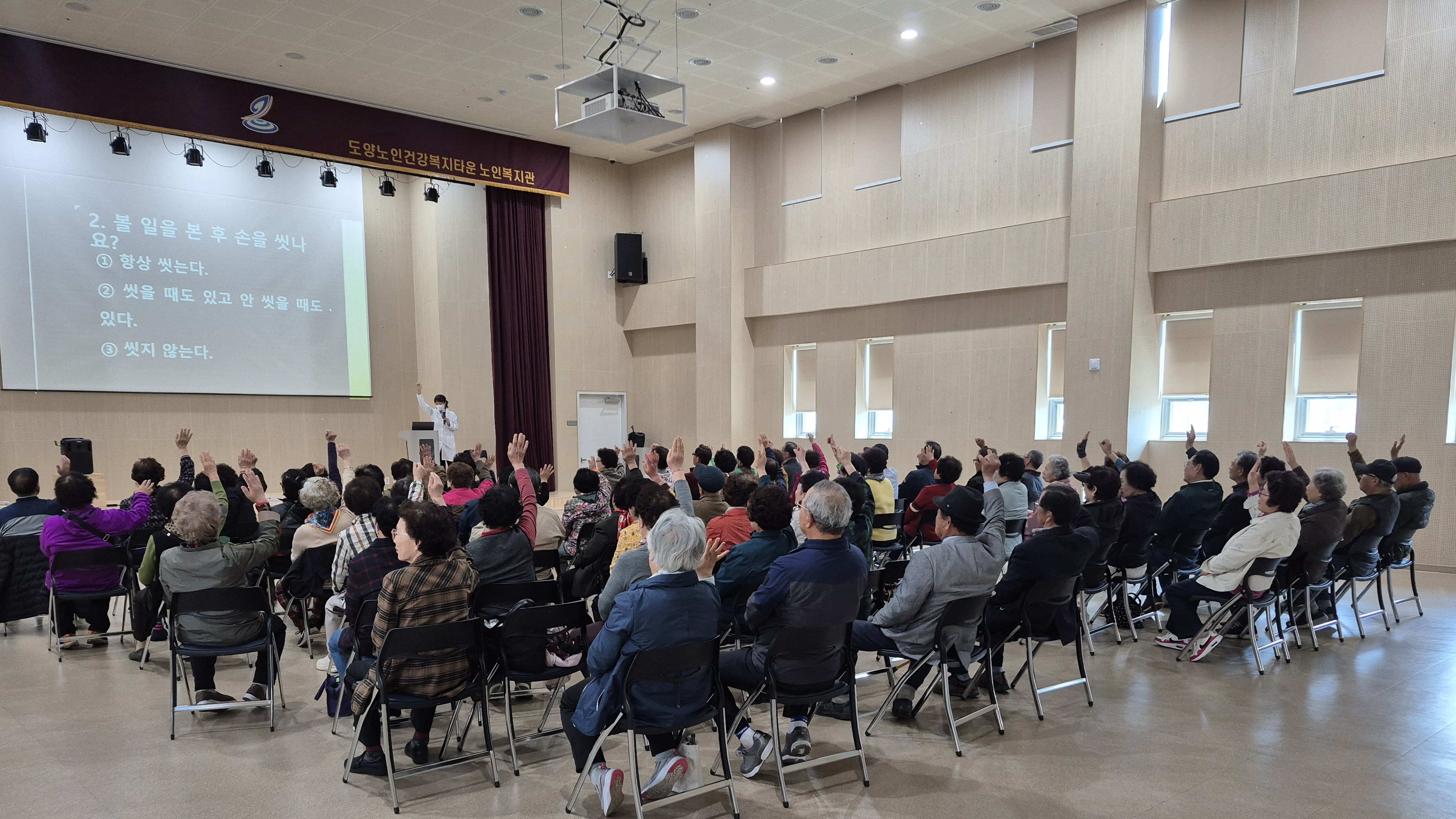 2026년 3월 26일(목), 도양노인건강복지타운 노인복지관은 고흥군보건소와 연계하여 감염병 예방교육을 진행하였습니다. 이번 교육에서는 결핵 예방, 올바른 손씻기의 중요성과 실천 방법, 식품매개 감염병 예방수칙, 호흡기 감염병 예방 및 개인위생 관리, 진드기 매개 감염병 예방과 야외활동 시 주의사항 등 일상생활에서 실천할 수 있는 다양한 예방수칙을 안내하였습니다. 교육을 통해 어르신들께 건강한 생활을 위한 올바른 위생 관리의 중요성을 다시 한번 되새기는 시간을 가졌습니다. 앞으로도 도양노인건강복지타운 노인복지관은 지역사회 어르신들의 건강 증진을 위한 다양한 교육을 지속적으로 추진해 나가겠습니다.