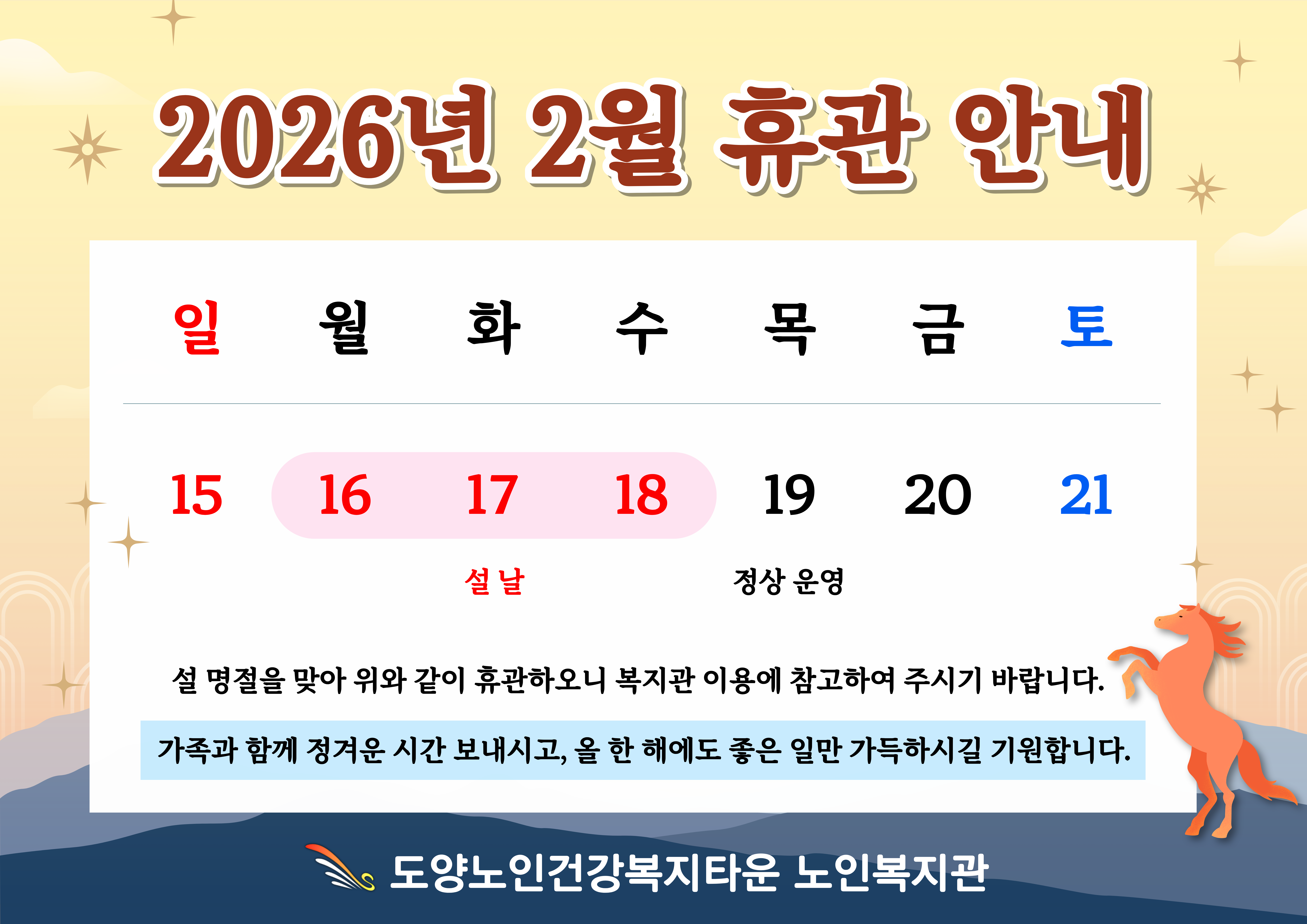 설 연휴 복지관 휴관 안내