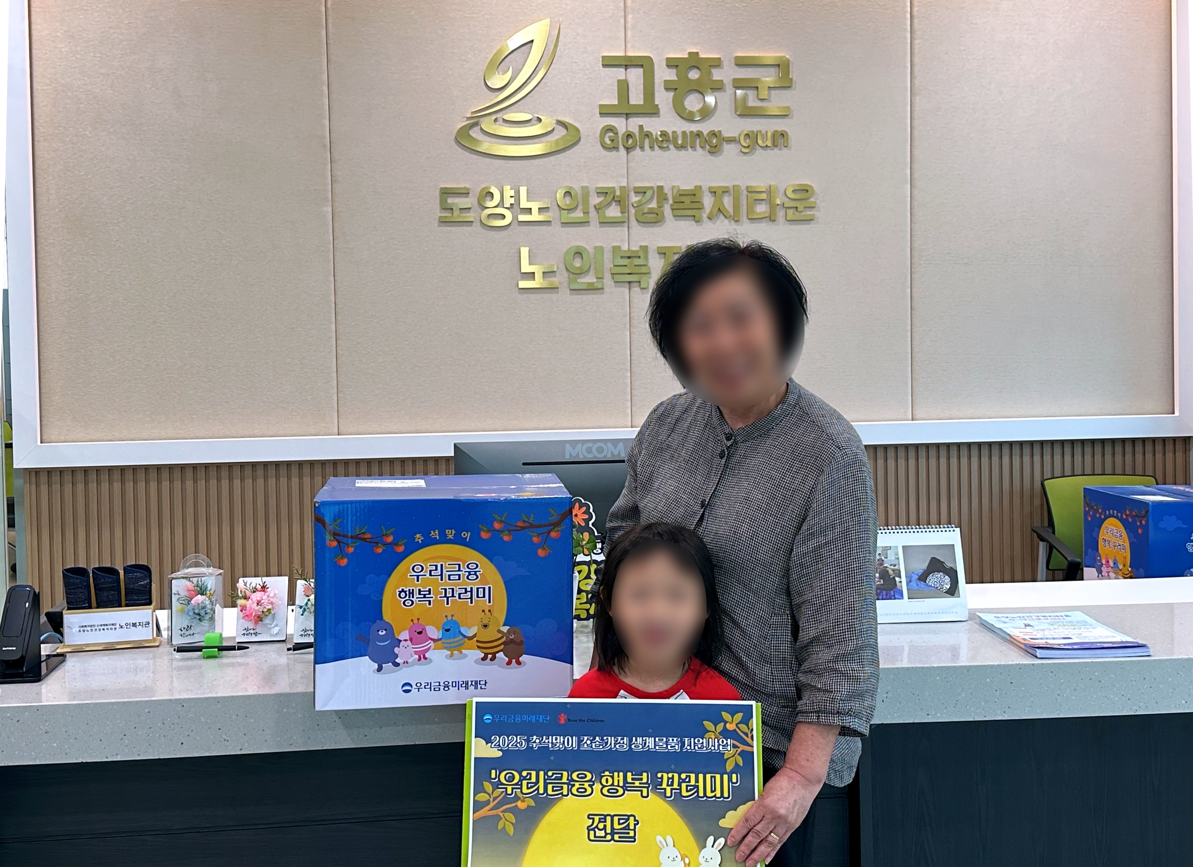![]() ![]() ![]() ![]() ![]() ![]() ![]() ![]() 도양노인건강복지타운 노인복지관 조손놀이방은 세이브더칠드런과 우리금융미래재단이 함께하는 추석맞이 조손가정 생계물품 지원사업 '우리금융 행복 꾸러미'에 선정되어 지역 조손가정 18가구에 전달해드렸습니다. 꾸러미 속 정성과 마음이 조부모님과 손자녀가 함께하는 명절에 작은 보탬이 되고, 따뜻한 명절 선물이 되었길 바랍니다. 앞으로도 조손가정의 행복한 일상을 위해 늘 함께하겠습니다. |