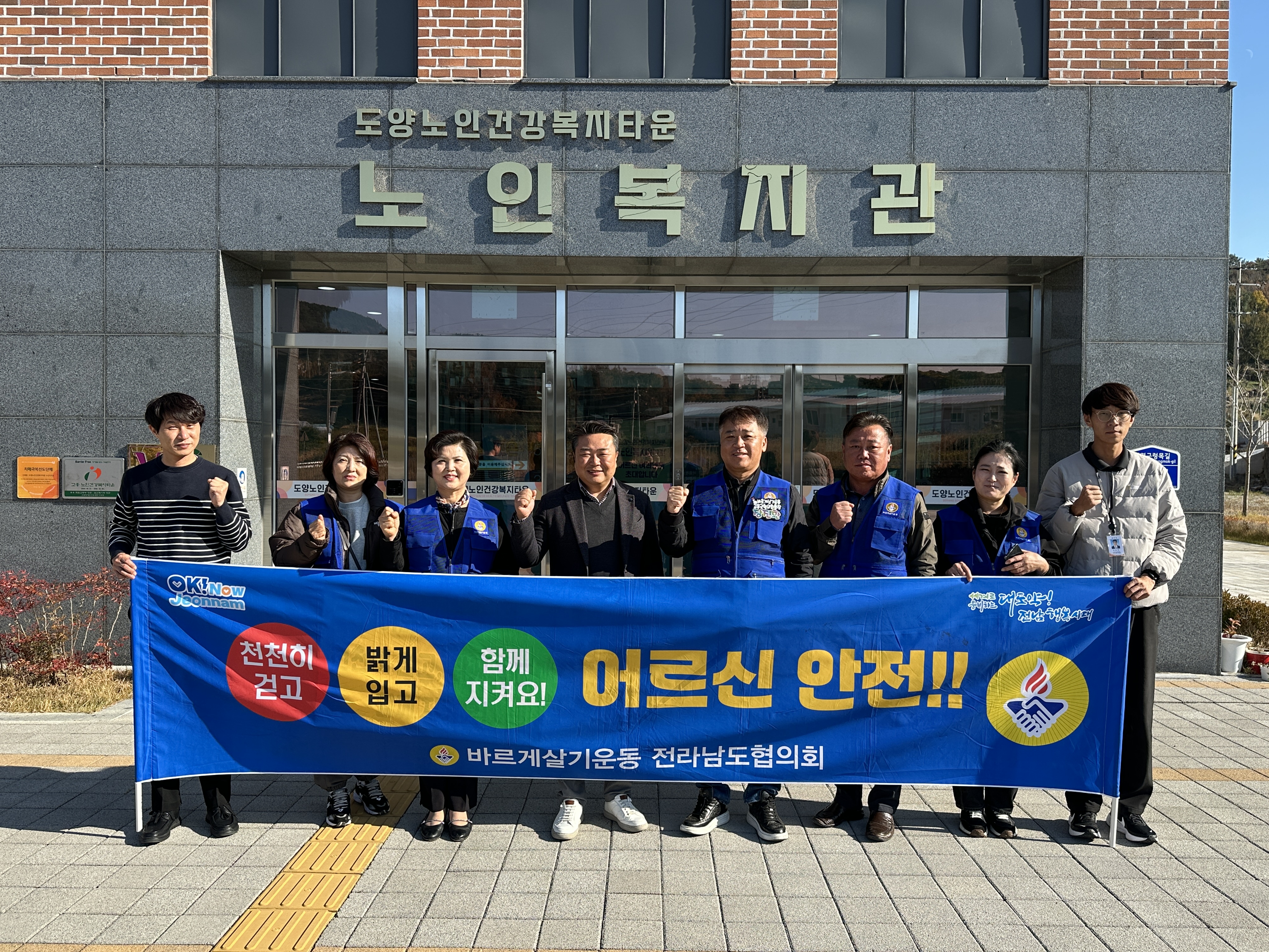 2025년 11월 26일(수) 바르게살기운동 고흥군협의회 회원님들께서 복지관을 방문하여 어르신들의 안전 의식을 높이기 위한 “천천히 걷고, 밝게 입고, 함께 지킴이” 캠페인을 진행하였습니다. 이번 캠페인은 어르신들의 겨울철 보행 안전사고를 예방하고, 야간 보행 시 시인성을 향상시키기 위해 마련된 자리로, 복지관 어르신들께 안전 수칙을 안내하며 서로를 지키는 따뜻한 지역사회 문화의 중요성을 되새기는 시간이었습니다. 앞으로도 도양노인건강복지타운 노인복지관은 어르신들께서 안전하고 건강한 생활을 하실 수 있도록