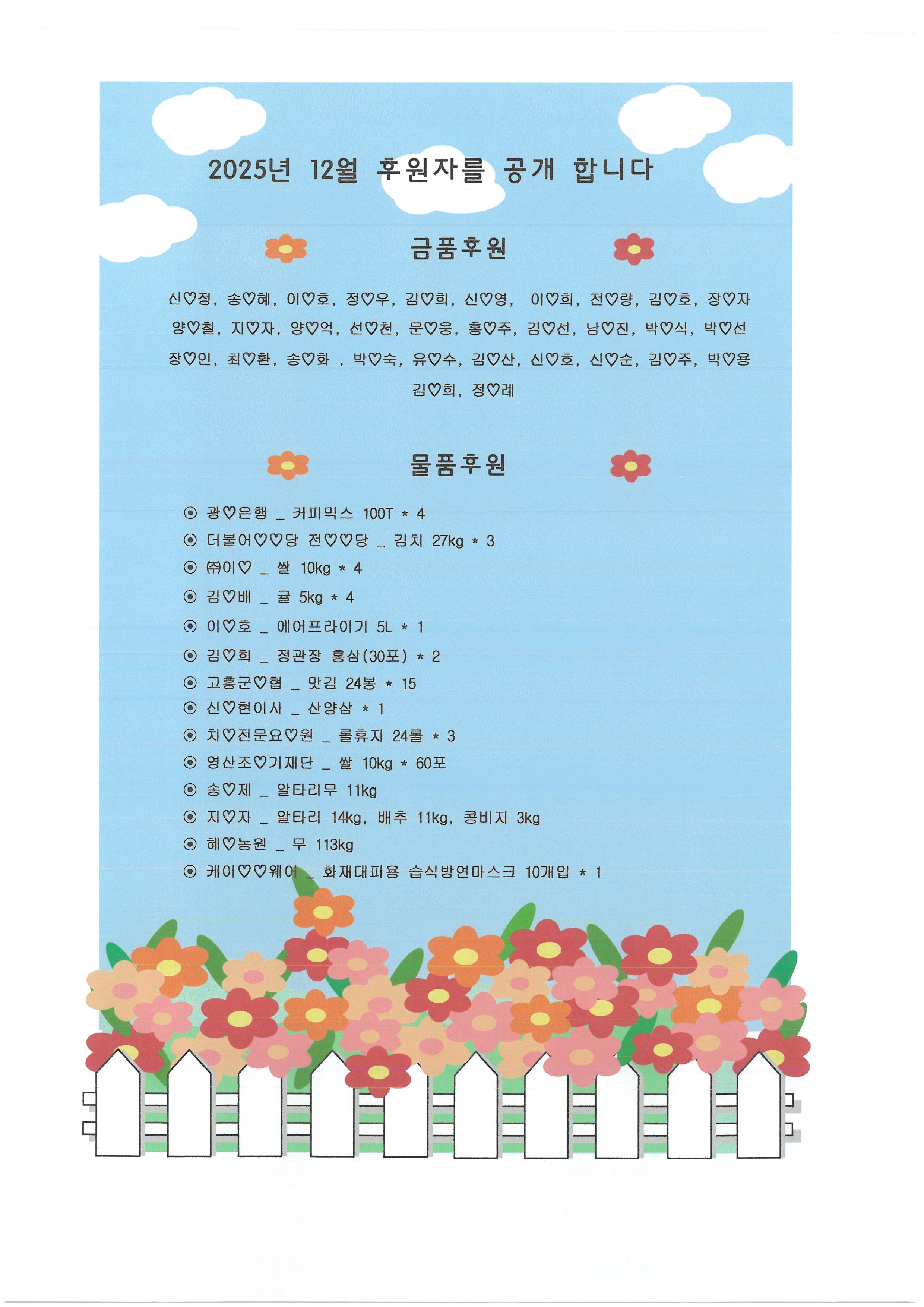 12월 선한이웃 ♡ 후원자