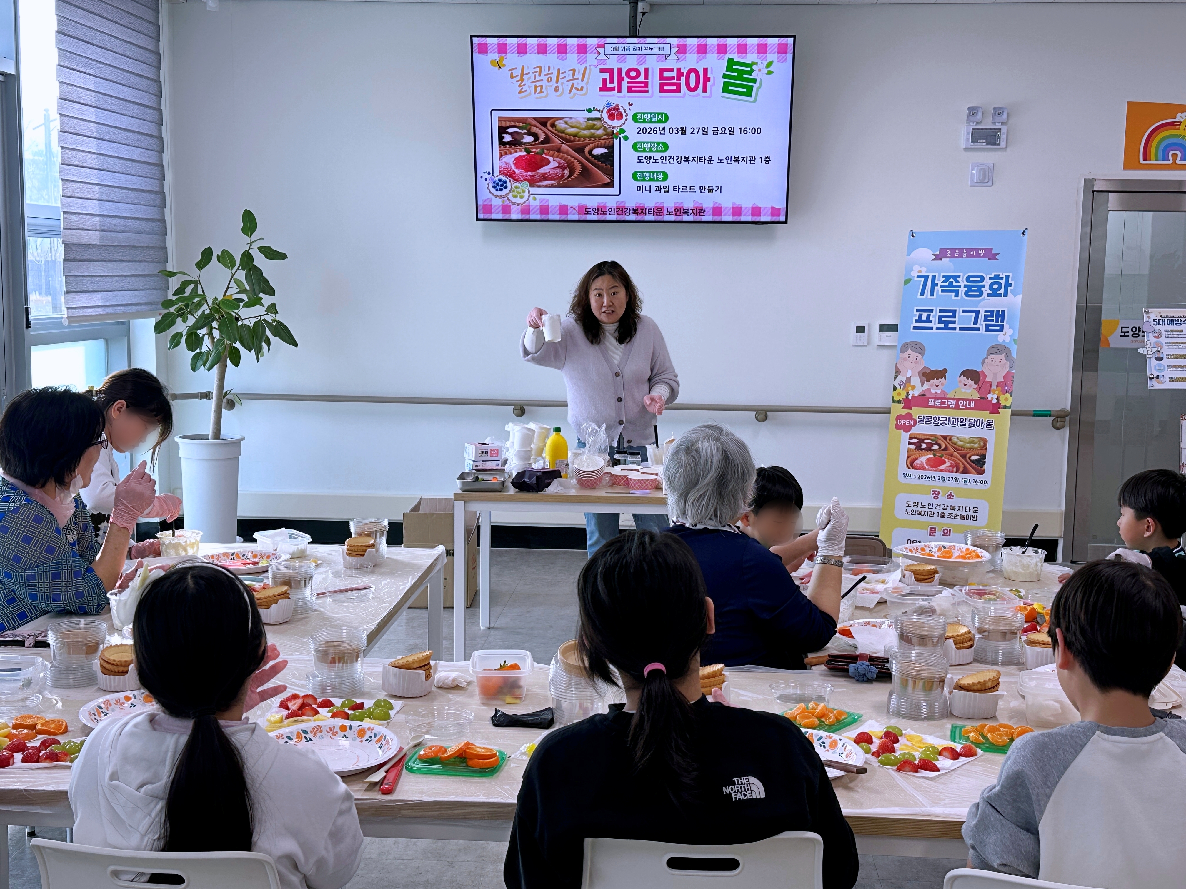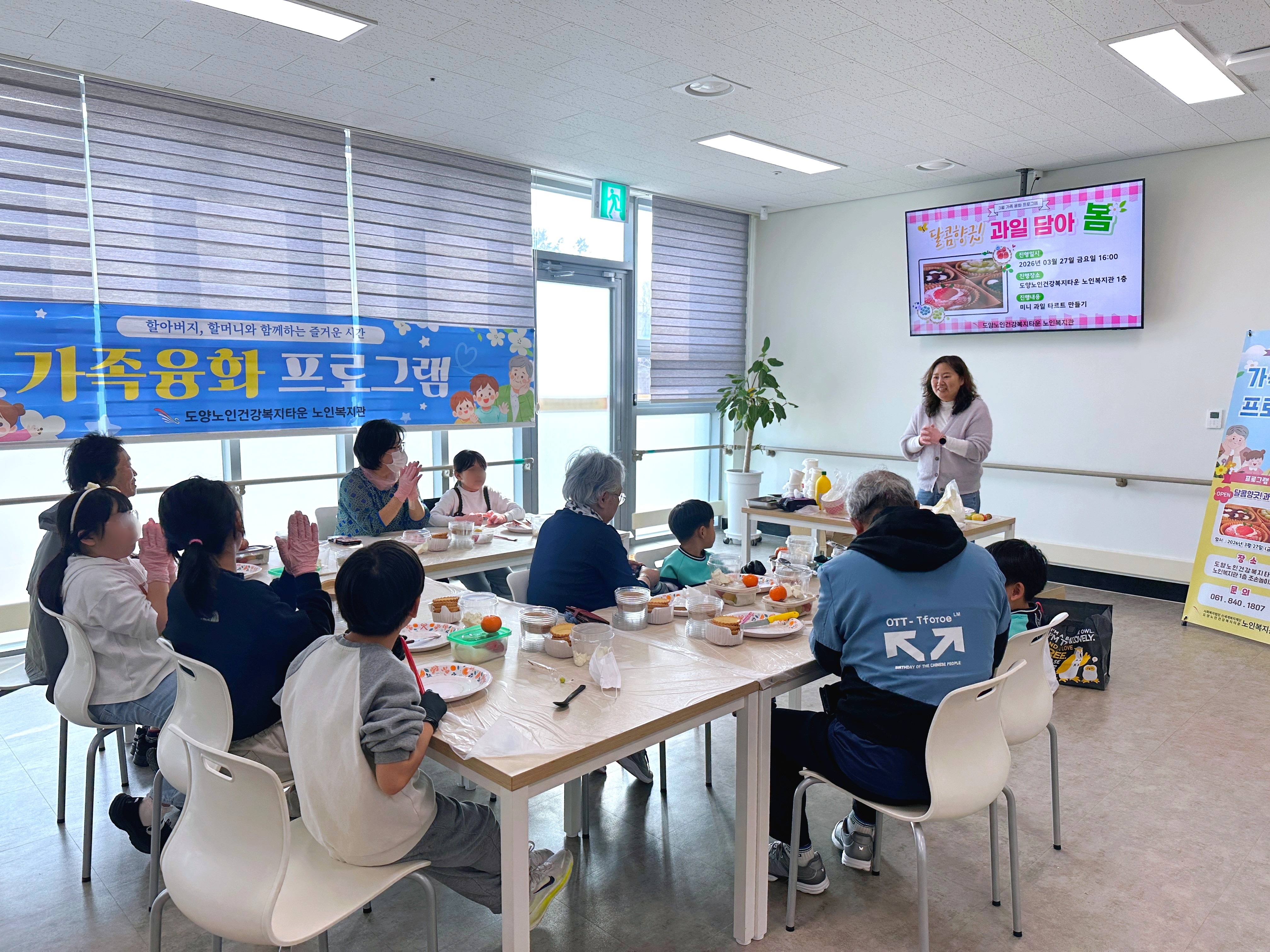 도양노인건강복지타운 노인복지관 조손놀이방에서는 3월 가족융화 프로그램으로 '달콤향긋! 과일 담아 봄'을 진행하였습니다.