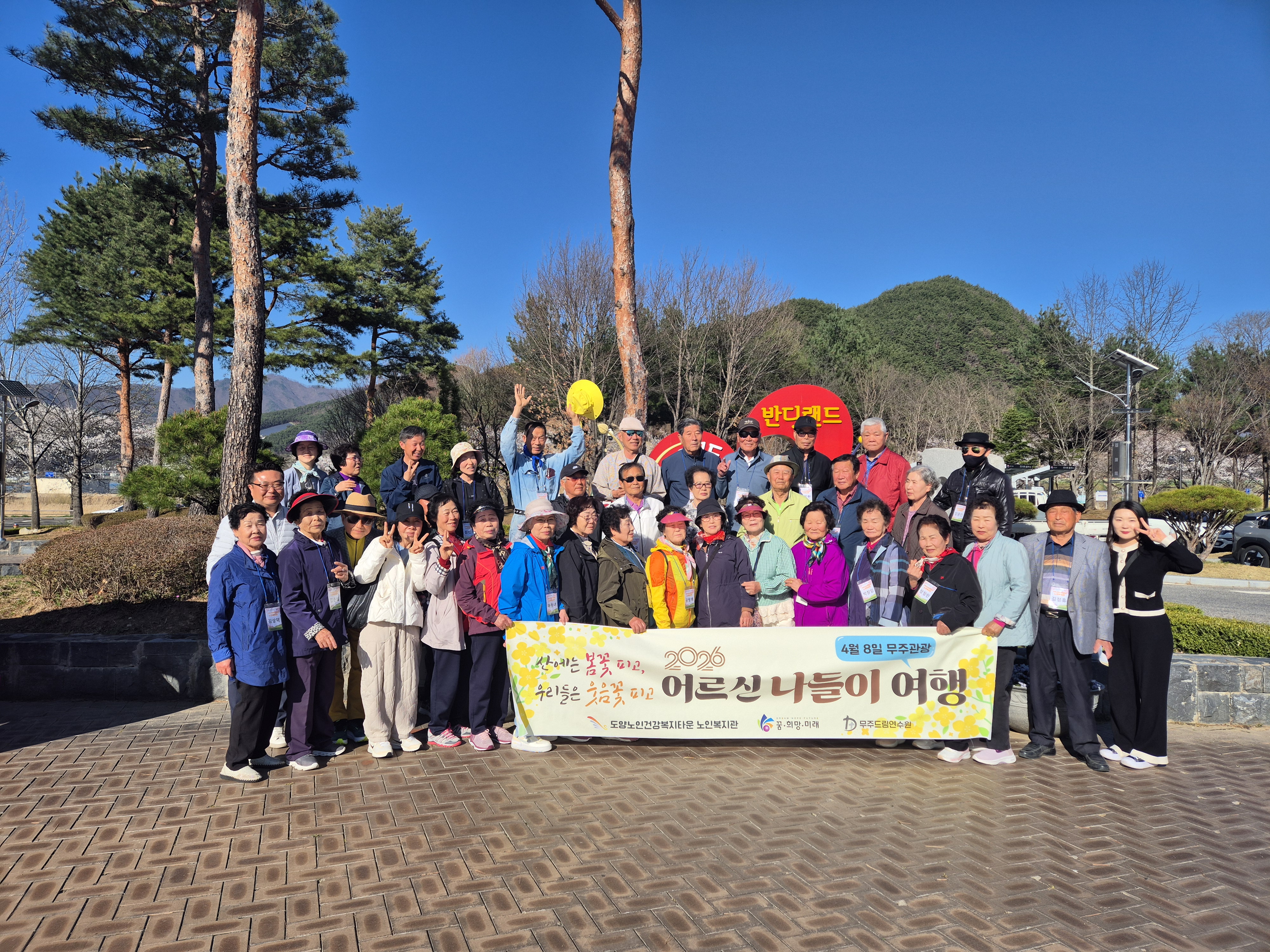도양노인건강복지타운 노인복지관에서는 2026년 4월 8일(수), 꿈희망미래재단과 드림연수원이 공동 기획·운영하는 「2026년 희망나눔 프로젝트 – 어르신 나들이 여행」 사업에 선정되어 복지관 이용 어르신 36명을 모시고 무주 관광 나들이를 다녀왔습니다.