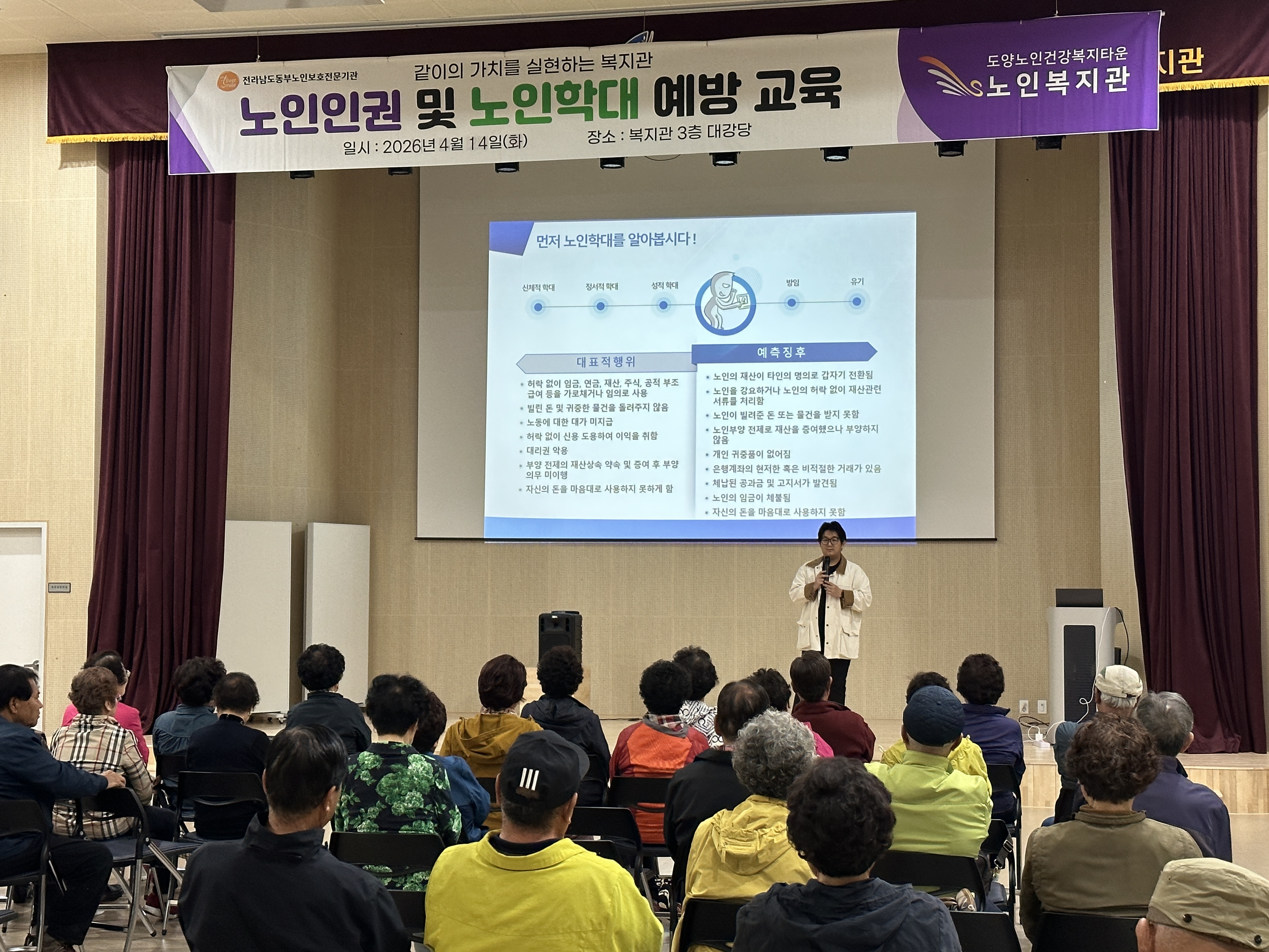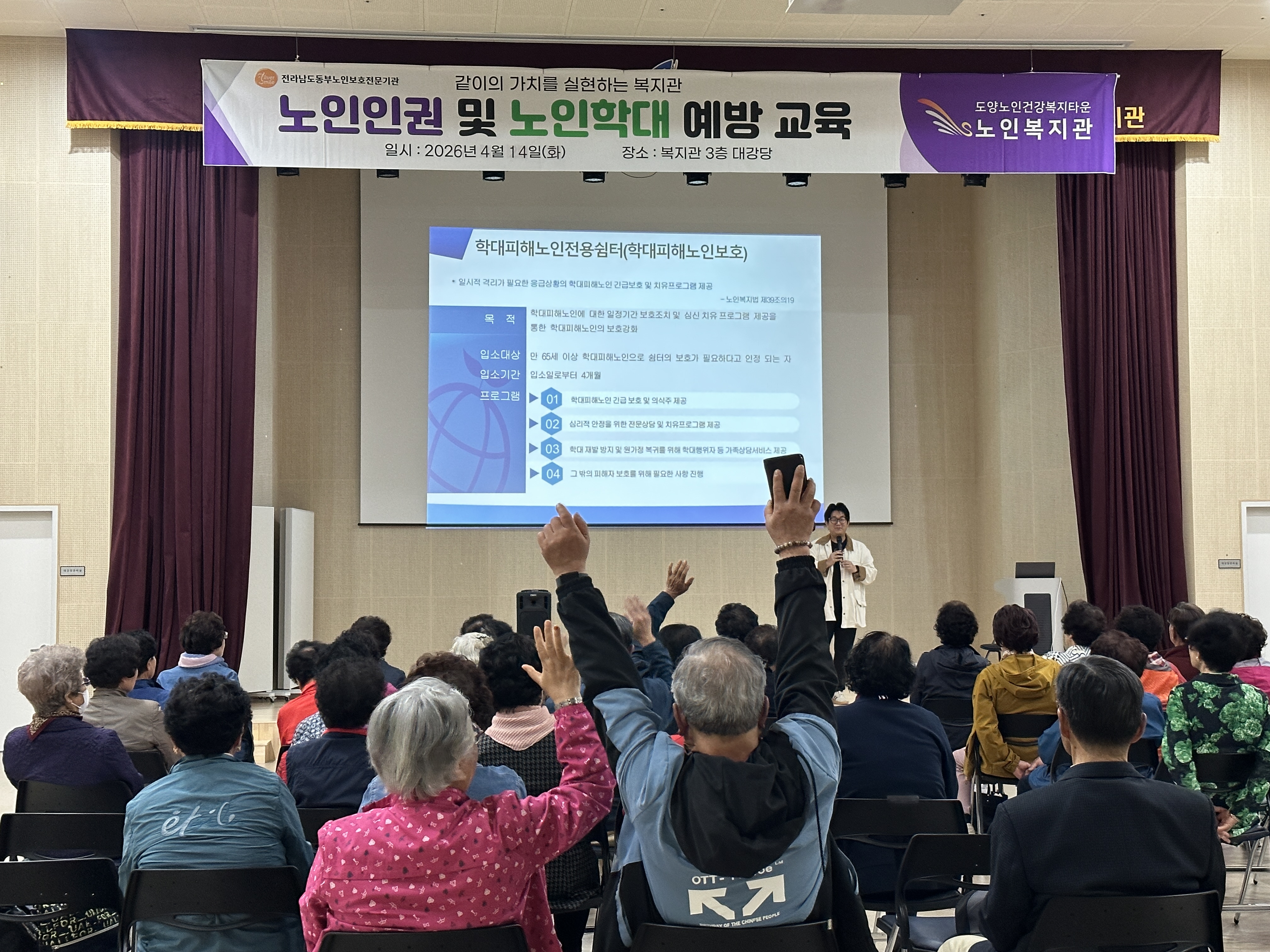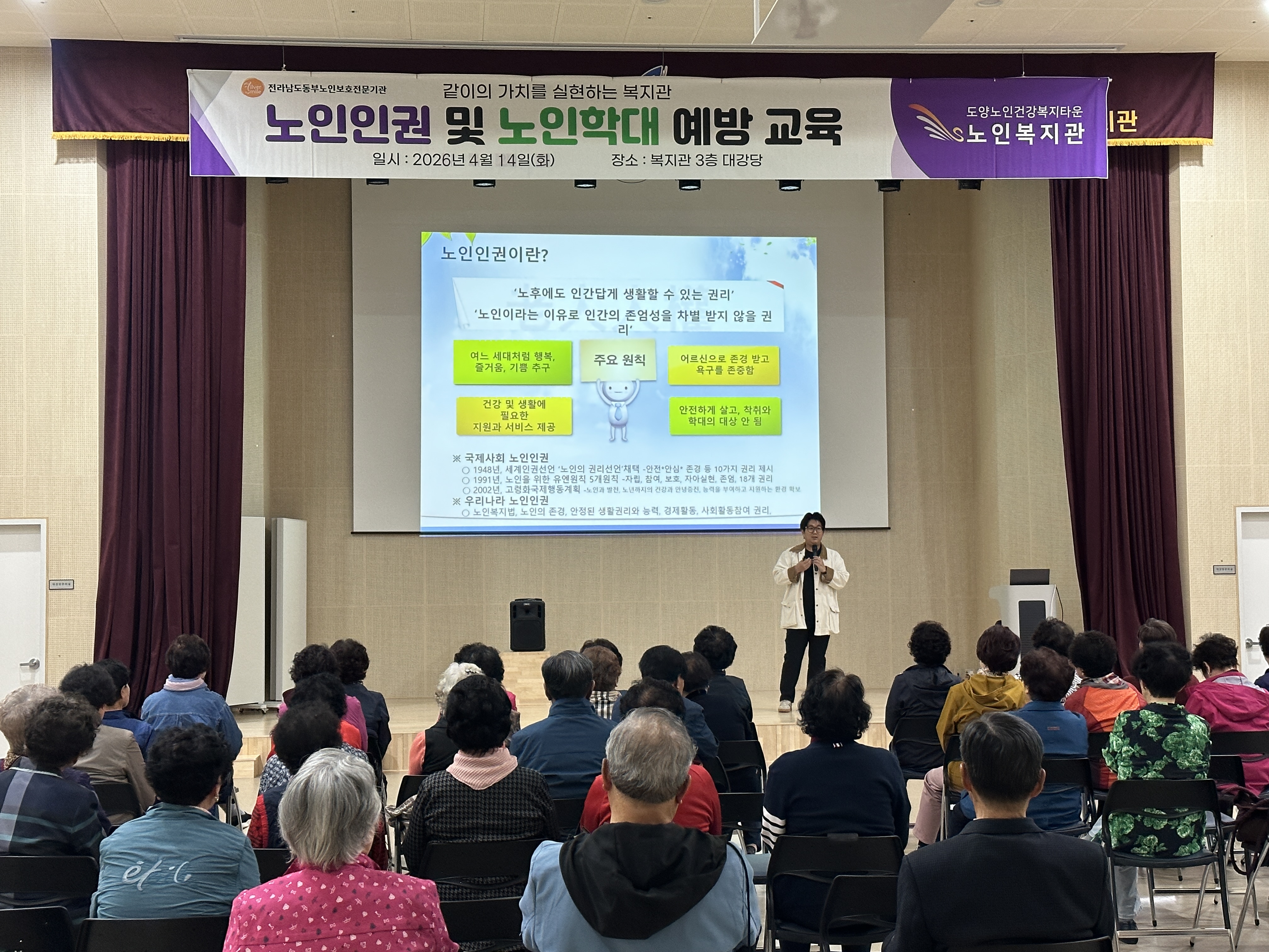 ![]() ![]() ![]() ![]() 2026년 4월 14일(화) 도양노인건강복지타운 노인복지관은 전라남도동부노인보호전문기관과 연계하여 복지관 이용 어르신들을 대상으로 노인인권 및 노인학대 예방 교육을 실시하였습니다.